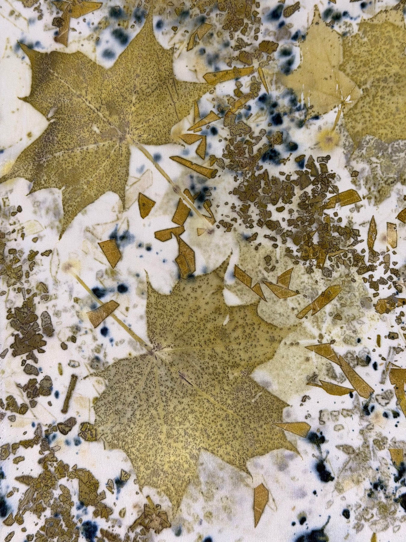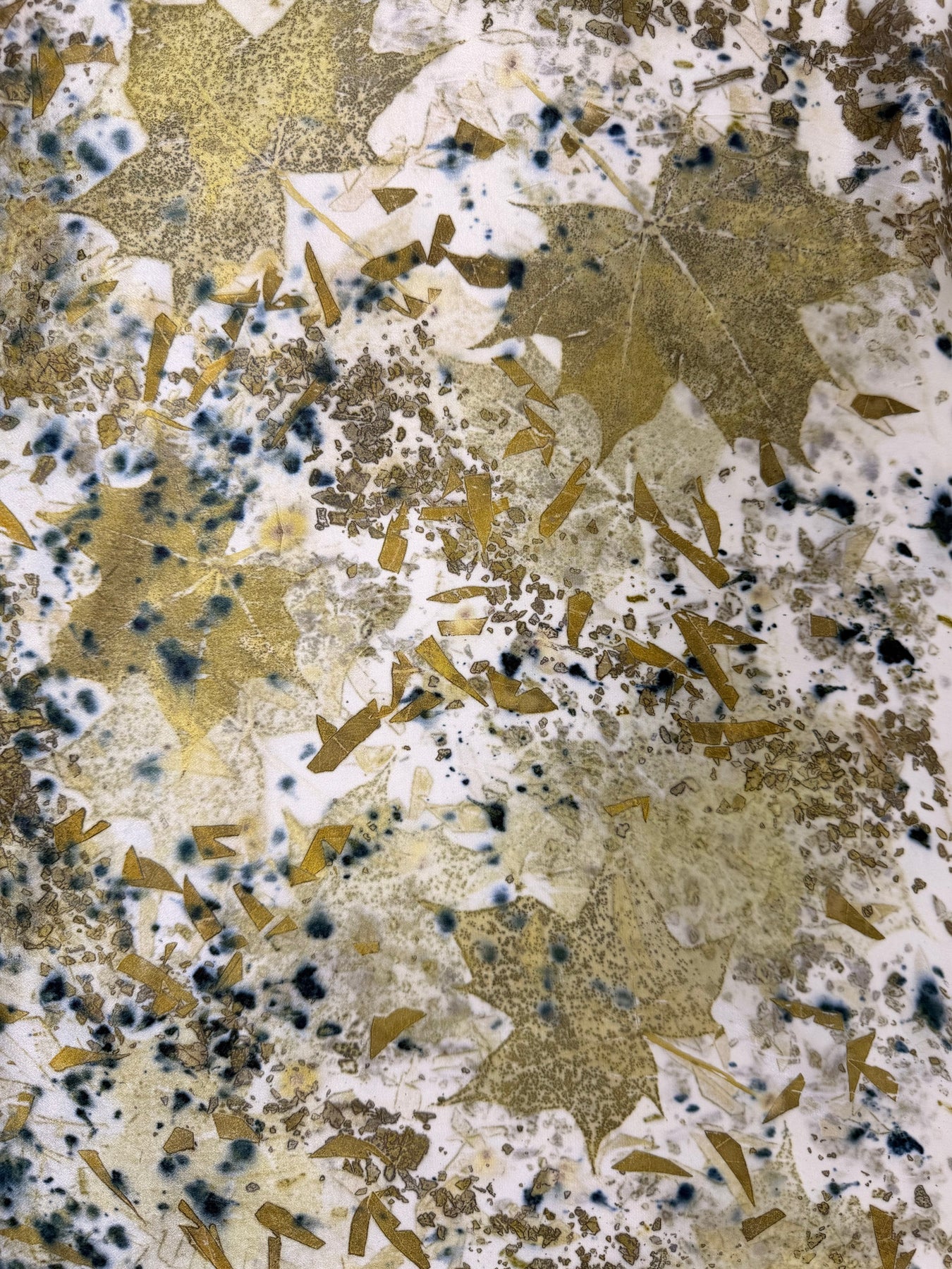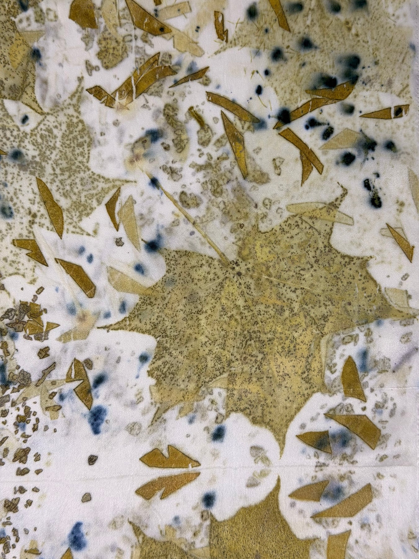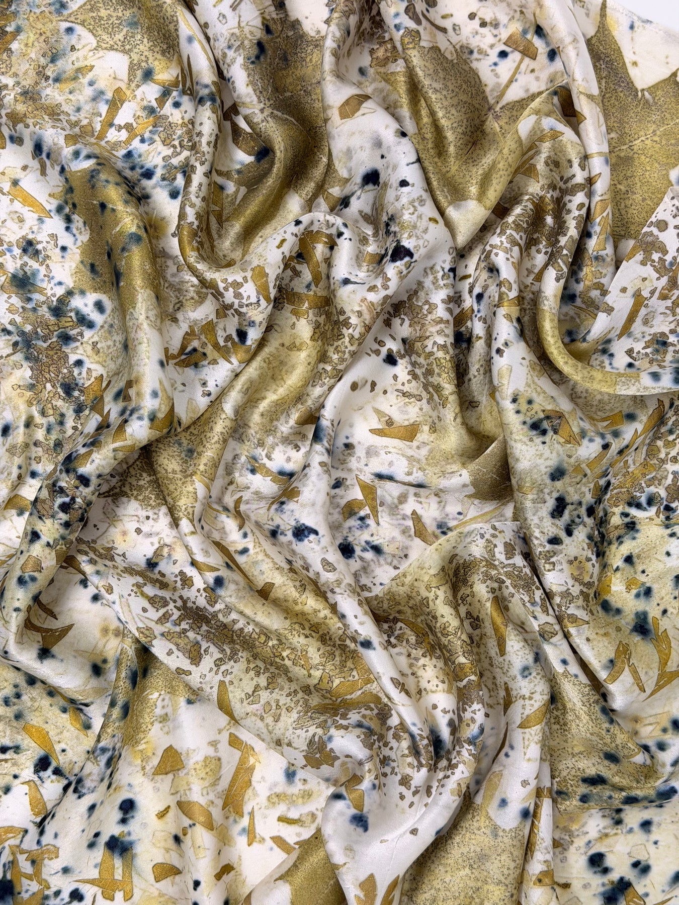 A one-of-a-kind Ecoprinted silk scarf from our Memora collection. Each piece is unique, made with botanical dyes to capture the beauty of nature in color and pattern.