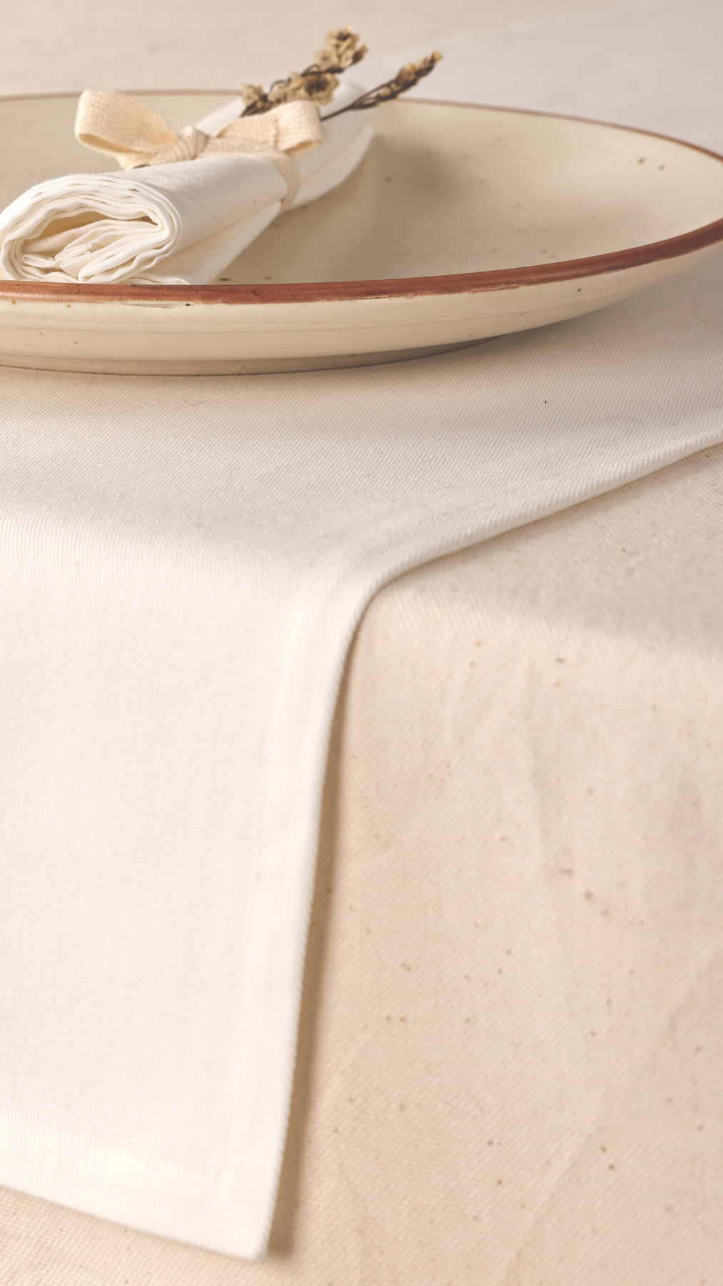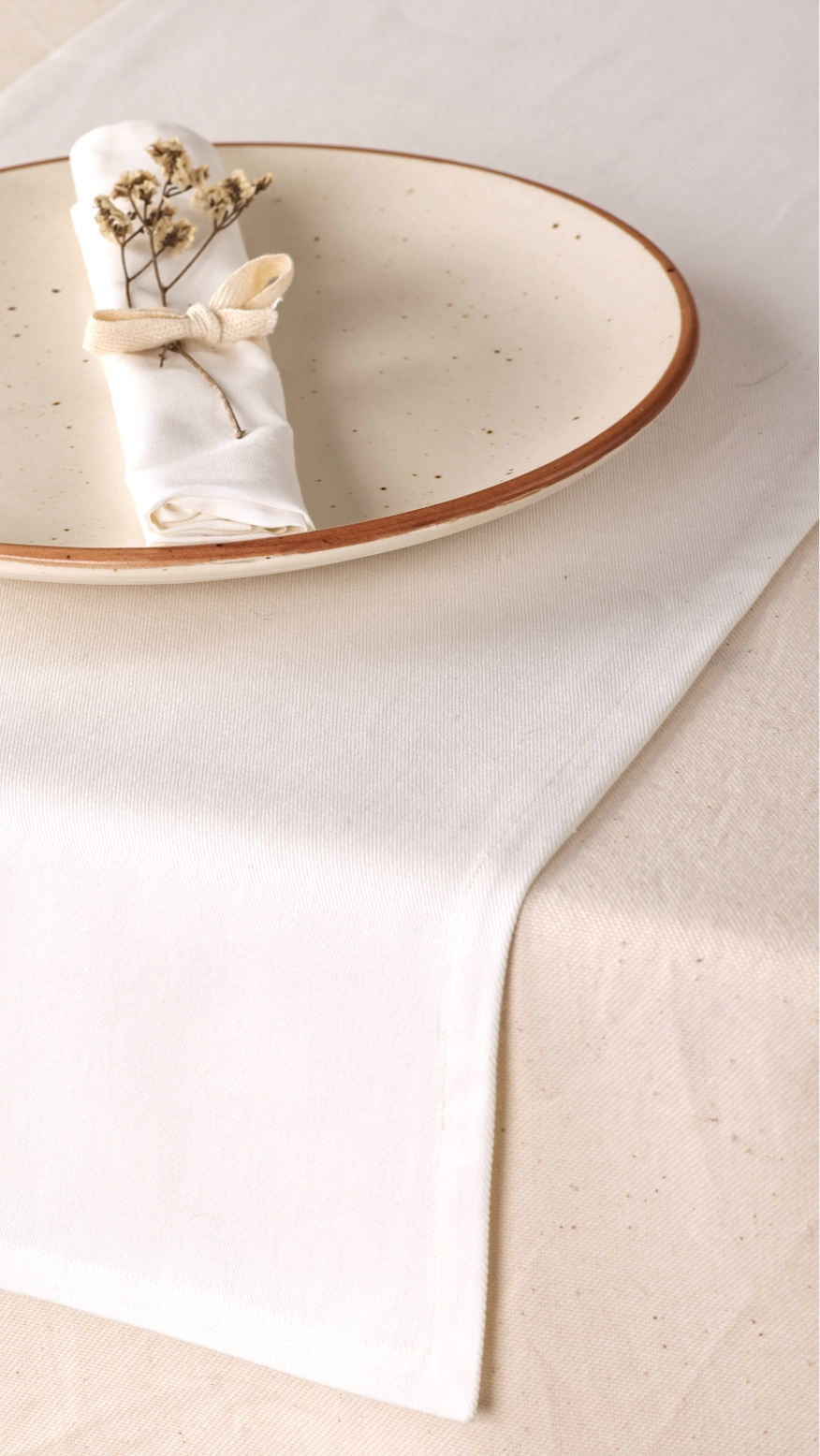 This 100% organic cotton table runner is a perfect blend of sustainability and style. 🌿 Naturally whitened and free from chemicals, the thick drill fabric offers a sturdy yet soft feel. It’s ready to be dyed and customized, making it an ideal choice for eco-conscious decorators and artists.