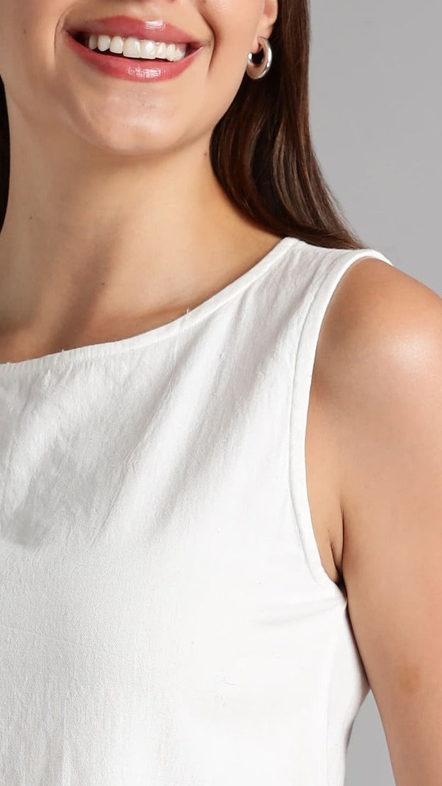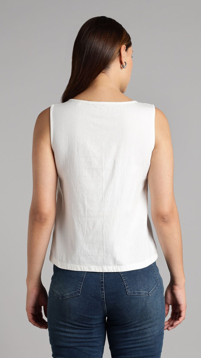 This women’s tank top is made from 100% organic cotton khadi, a handwoven fabric known for its softness, breathability, and natural texture. Gentle on the skin, khadi creates a comfortable garment that feels light yet substantial.