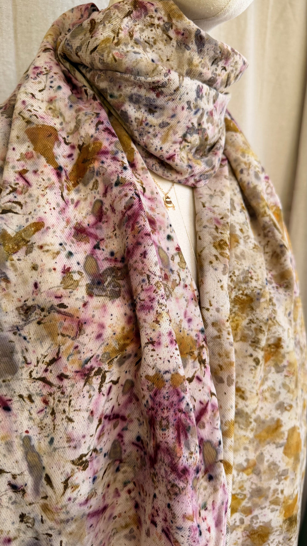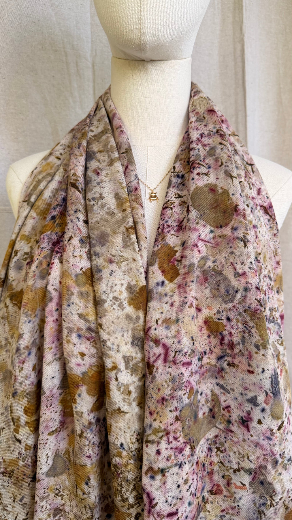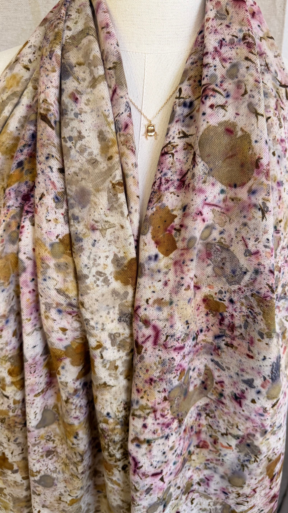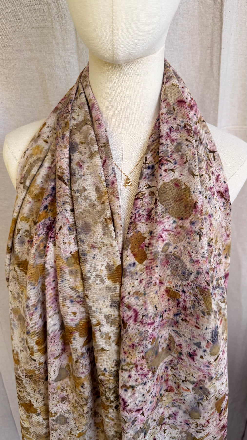 Confetti Nube because color is everything. Each Nube scarf is a one-of-a-kind work of art, hand-dyed with real leaves and natural pigments through the color bundle technique and ecoprint, creating vibrant, unrepeatable patterns that are as unique as you are. Crafted in 100% lightweight cotton twill, soft, versatile, and endlessly wearable. Scarf, bandana, top, turban — it adapts to every version of you.
