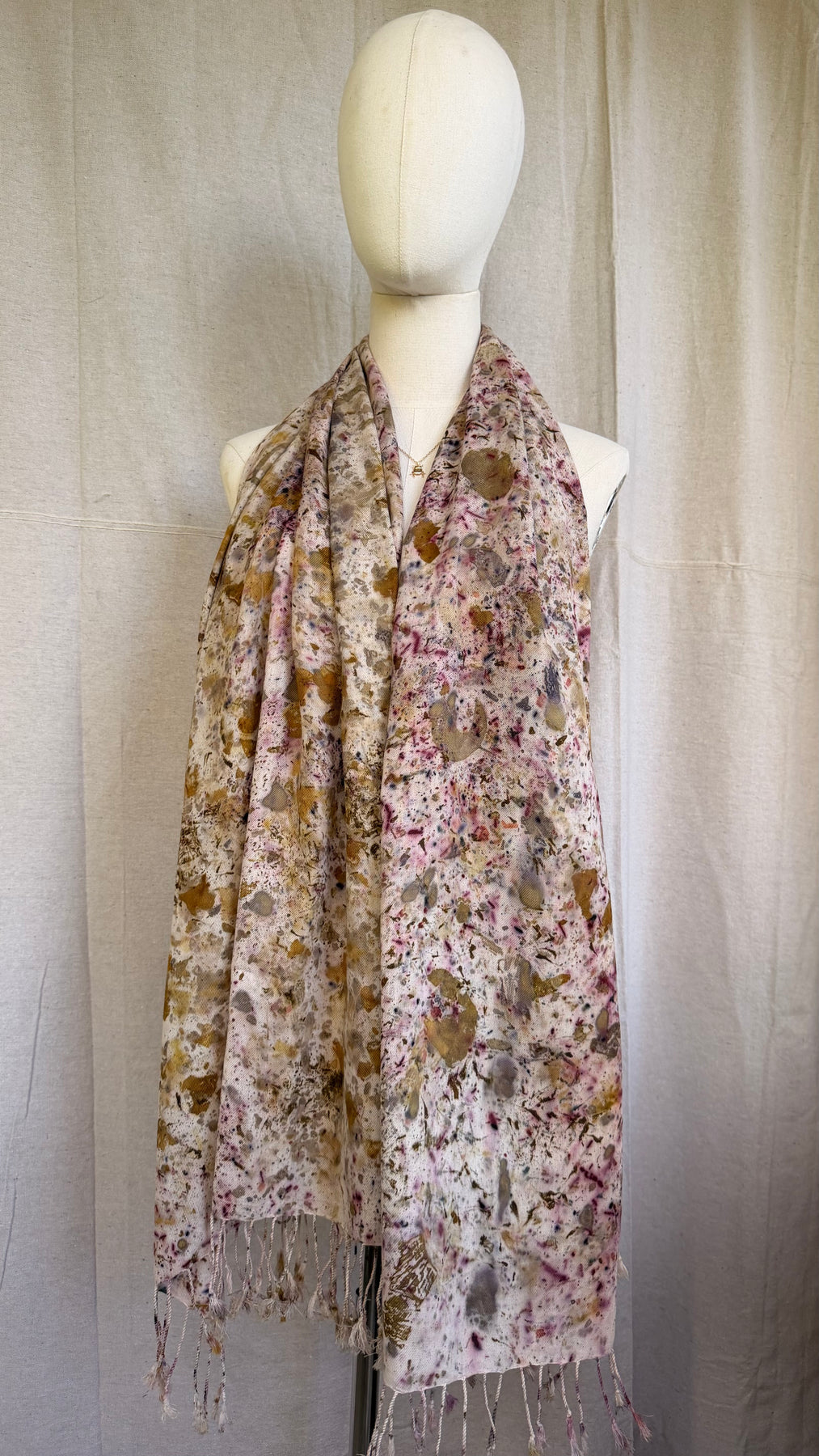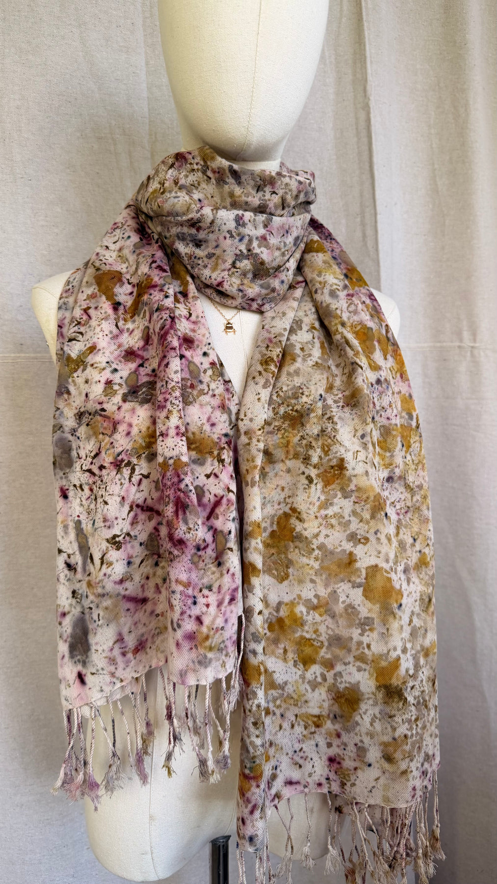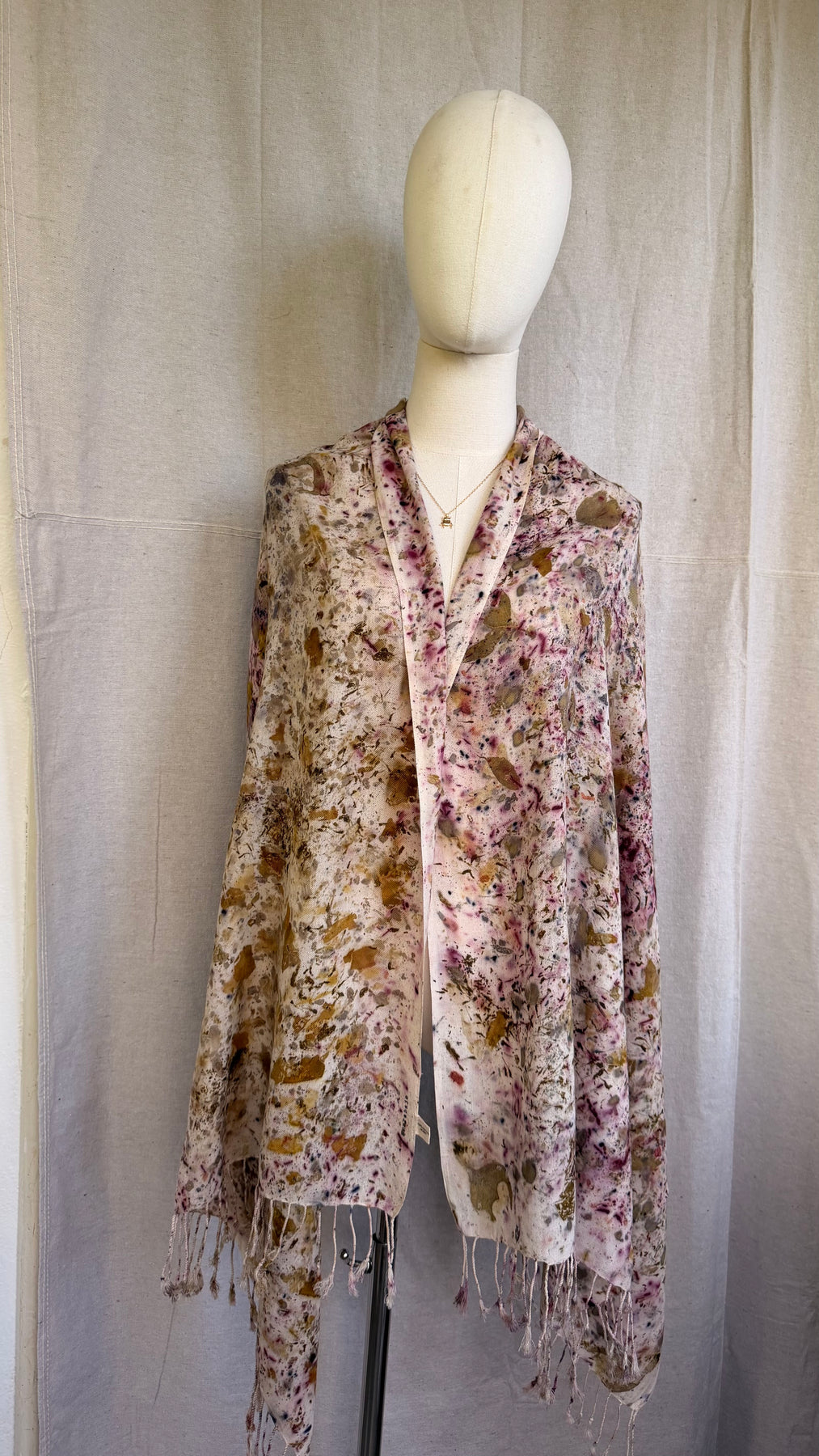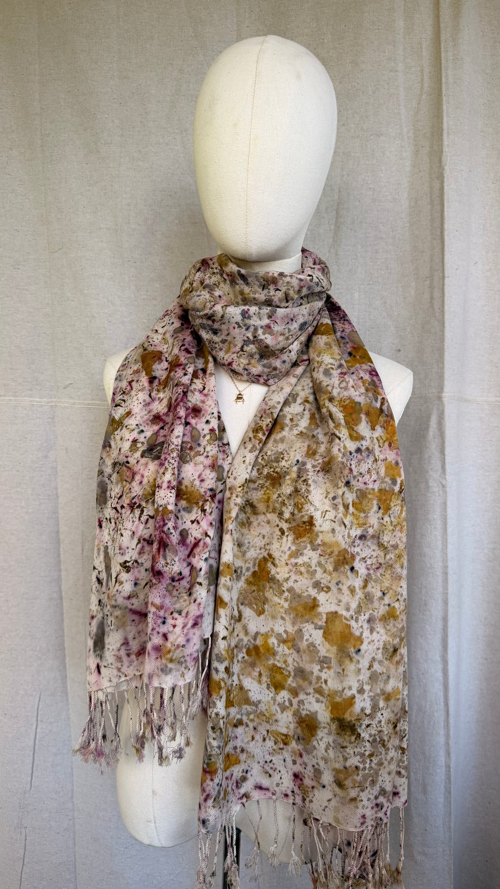 Confetti Nube because color is everything. Each Nube scarf is a one-of-a-kind work of art, hand-dyed with real leaves and natural pigments through the color bundle technique and ecoprint, creating vibrant, unrepeatable patterns that are as unique as you are. Crafted in 100% lightweight cotton twill, soft, versatile, and endlessly wearable. Scarf, bandana, top, turban — it adapts to every version of you.